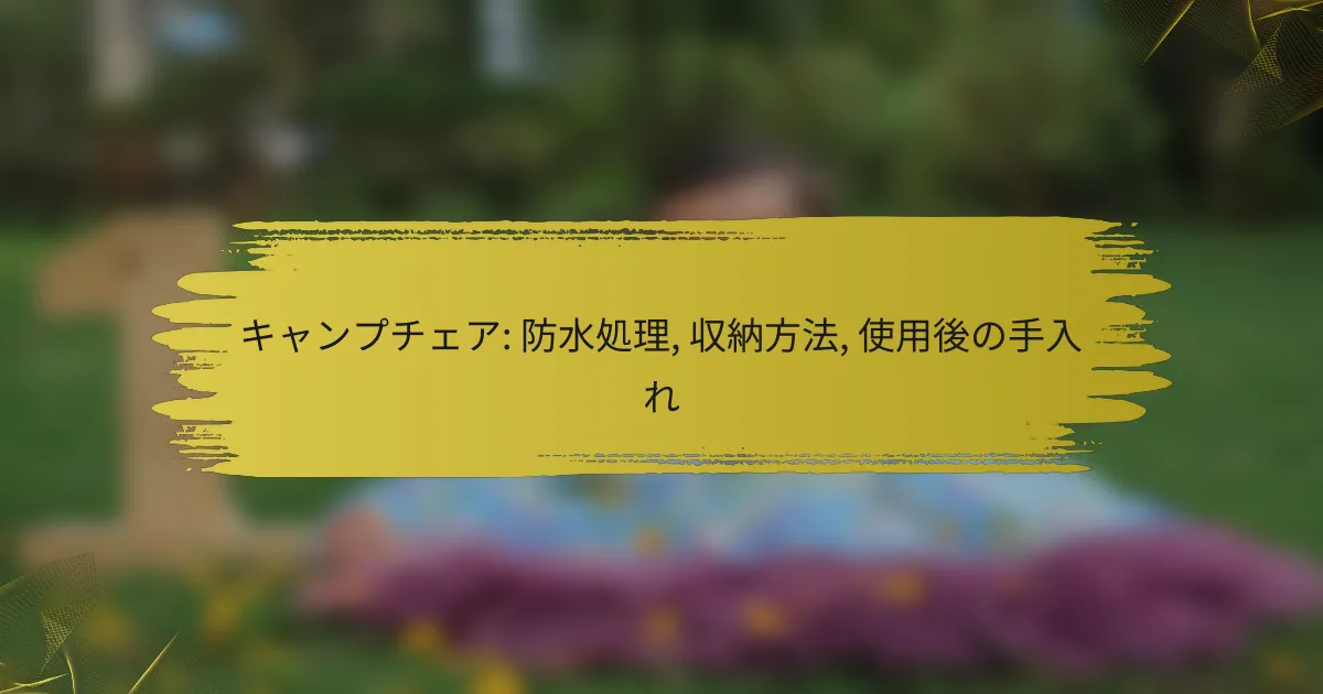 キャンプチェアは、快適なアウトドア体験を提供するために、防水処理や適切な収納方法、使用後の手入れが重要です。防水処理により、雨や湿気から椅子を守り、長持ちさせることができます。また、正しい収納と手入れを行うことで、次回のキャンプでも快適に使用できる状態を保つことができます。