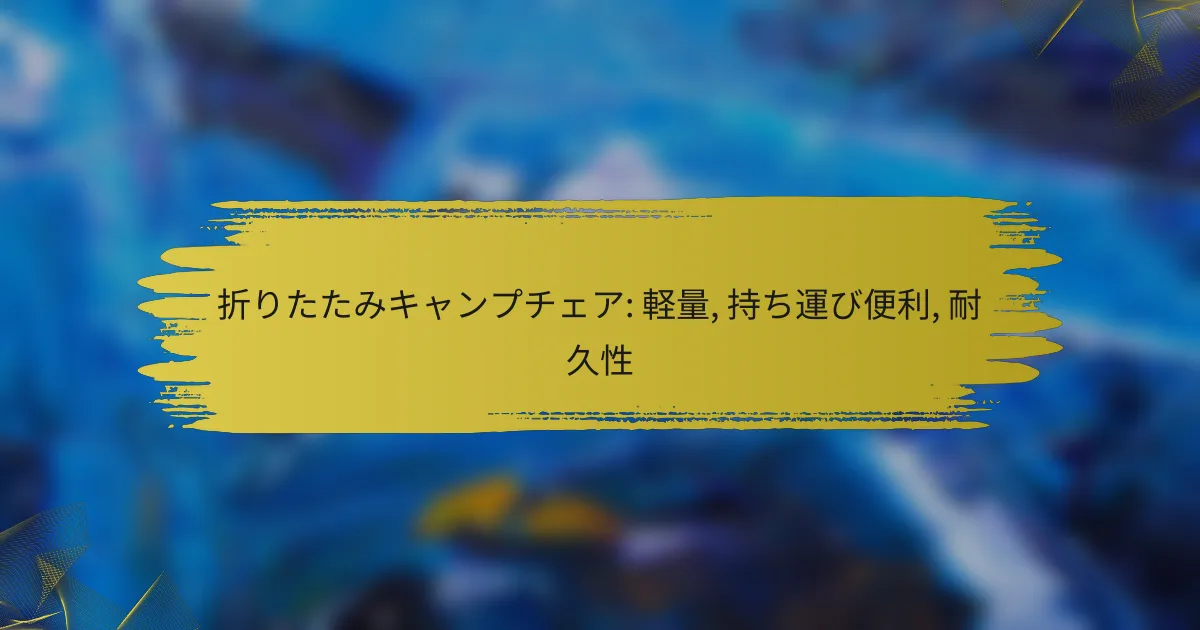 耐久性のある折りたたみキャンプチェアを選ぶ際は、素材や構造、使用環境を考慮することが重要です。これにより、長期間使用できる信頼性の高い製品を見つけることができます。